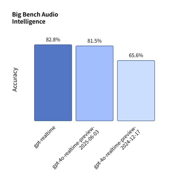 内部評価によると、推論能力を測定するBig Bench Audioベンチマークでは82.8%の精度を達成し、従来の65.6%から大幅に向上した。また指示理解精度も30.5%に達し、前バージョンの20.6%を上回る結果となっている。