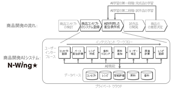 このAIシステムは、過去に商品化された約170品目のレシピや原料情報を学習しており、新商品のコンセプトを入力することで最適な原料の組み合わせや配合比率を提案します。