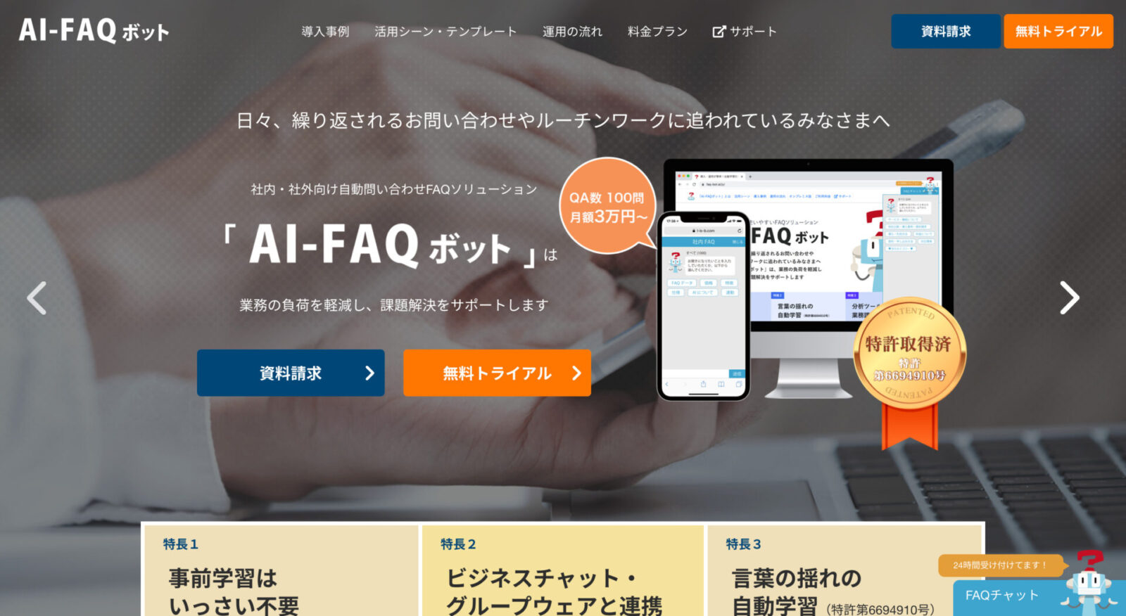 話し言葉のような自然な文章を理解し、最適な回答を導き、回答までのプロセスで関連度の高い単語を文脈から抽出し自動学習します。