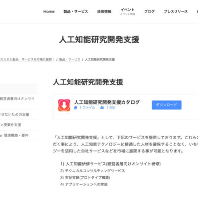 経営者層向けオンサイト研修など人工知能研修サービス、テクニカルコンサルティングサービス、実証実験(プロトタイプ構築)、アプリケーションへの実装