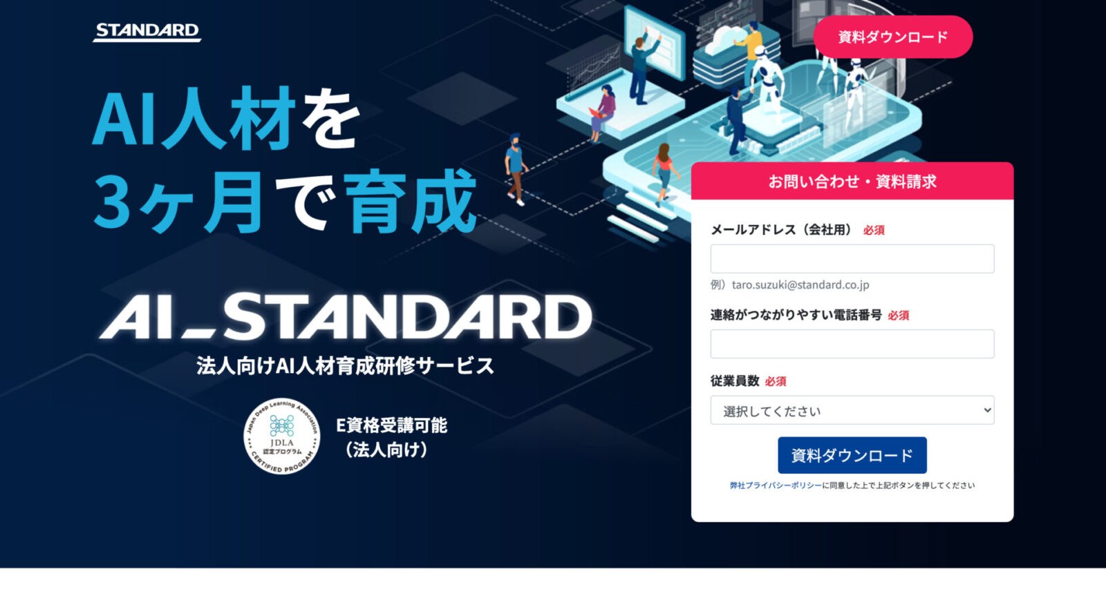 会社のAIプロジェクトをマネジメントする中心人物育成のAIマネジメント講座と、即戦力となるための必要な機械学習の手法を網羅したAIエンジニアリング講座を提供しています。