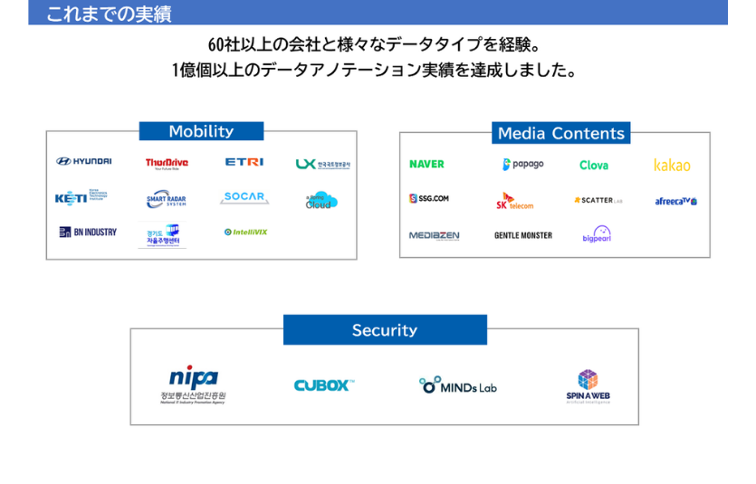 難易度の高い「プロシェクト型」においては、センサーフージョン、3Dポイントクラウドなど高度なアノテーションにも対応し高い技術力を持っています。