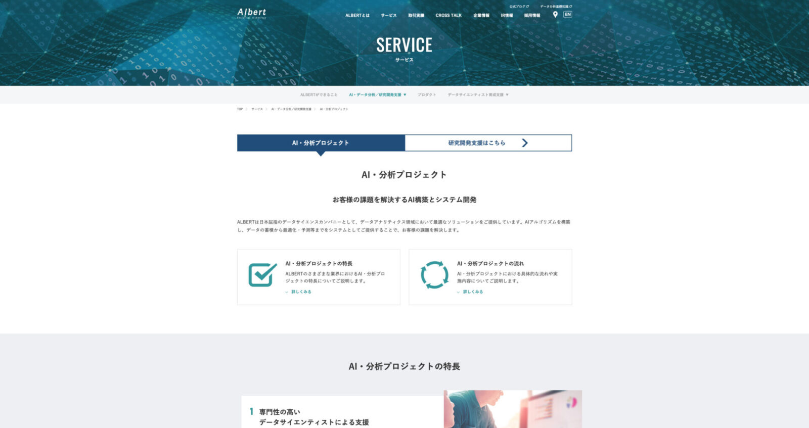 AIアルゴリズムだけでなく、「分析力」をコアコンピタンスとしてシステム開発まで一気通貫で対応可能です。