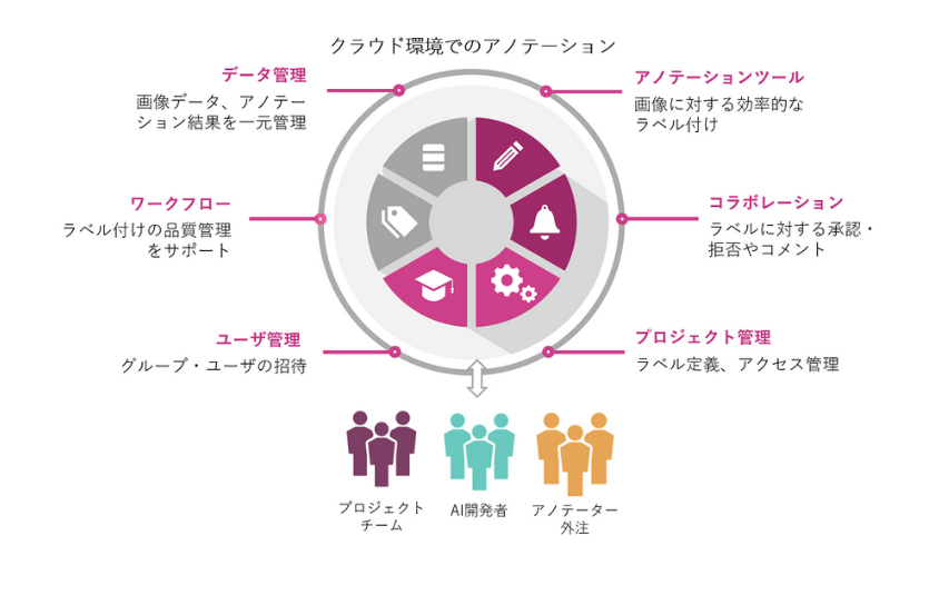 高品質なアノテーションデータをチームで効率的に作成できるコラボレーション型アノテーションツールで、複数人数・多人数でのアノテーションプロジェクトを支援