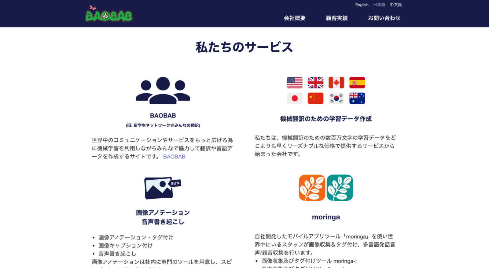 機械翻訳のための数百万文字の学習データをどこよりも早くリーズナブルな価格で提供し、画像アノテーションや音声の翻訳、言語データを作成も可能