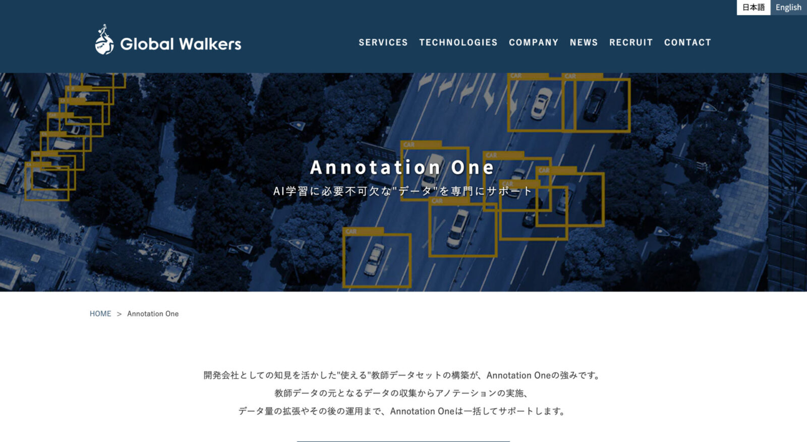 "使えるAI"のための教師データセット構築・運用プラットフォーム でアノテーション用のデータの収集/作成作業から、画像への矩形付与、領域分割、 キーポイント付与、意味的(セマンティック)アノテーションやテキストの書き起こしなど多彩なデータセット作成プランの提供が可能です。