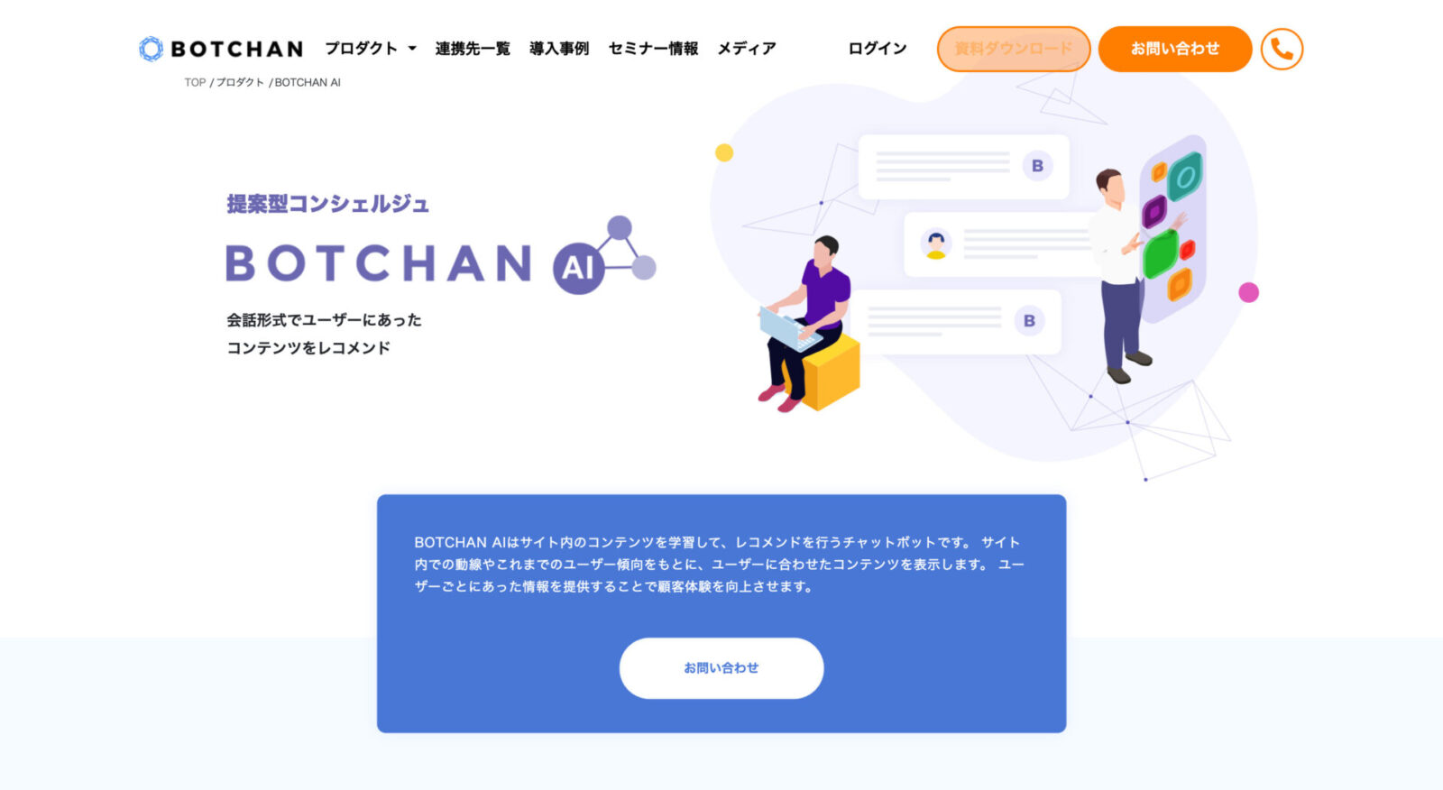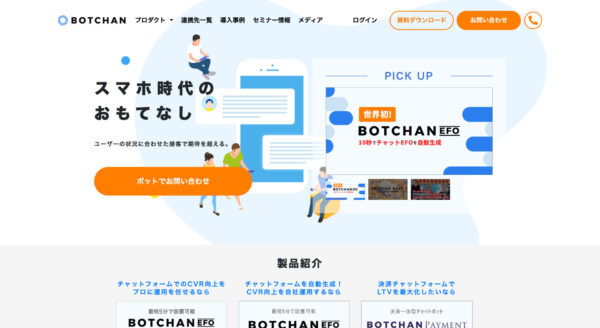 フォーム入力を快適にするBOTCHAN EFO、LTVを最大化するBOTCHAN PAYMENT、1to1マーケティング向けのBOTCHAN for LP、サイト内にある大量のコンテンツを学習して提案するBOTCHAN AIのように用途に応じた派生プロダクトも豊富です。