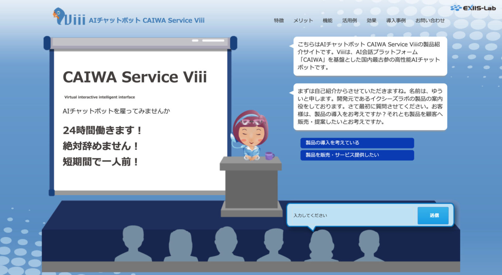 24時間365日いつでもどこでも自然な言葉で質問に回答するチャットボットです。学習済辞書搭載で大量の学習データ登録は不要、1ヶ月でローンチ可能、正答率95%以上を実現します。