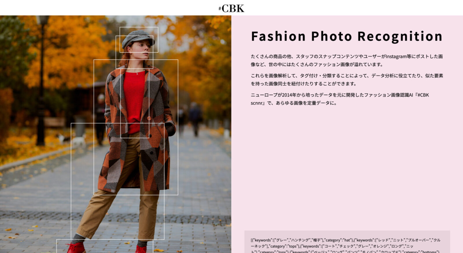 ファッションに特化した人工知能で、商品画像をAIでタグ付けしたり、コーディネート提案、SNS分析によるトレンド予測、実店舗での来店客分析、需要予測など様々なサービスを提供しています。