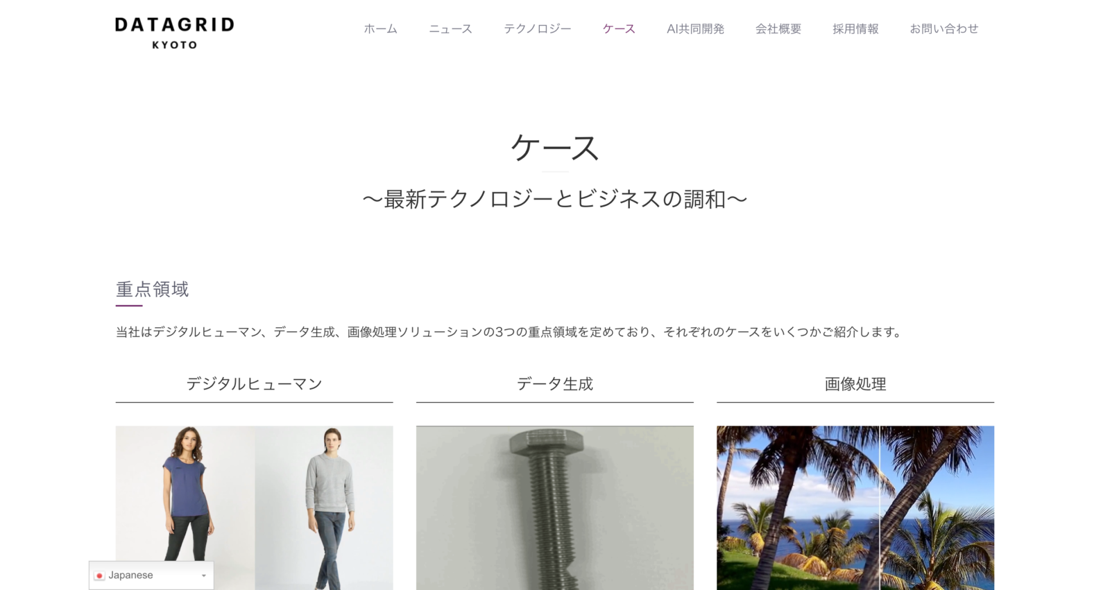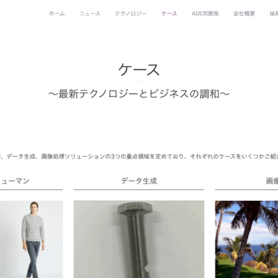 フォトリアルなデジタルヒューマンを生成するテクノロジーや、シミュレーションデータの生成や異常データのデータ生成、高品質の画像処理ソリューションなどを提供しています。