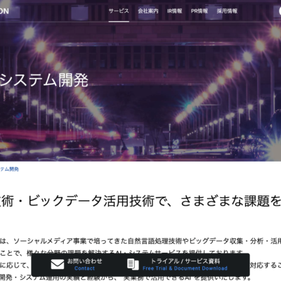 ソーシャルメディア事業で培った自然言語処理技術やビッグデータ収集・分析・活用技術に加え、画像解析技術を駆使した、様々な分野の課題を解決するAIサービスを提供