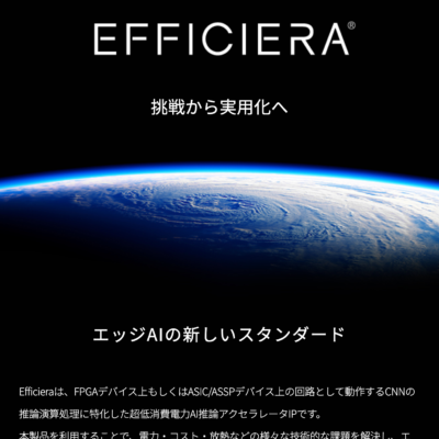 Efficieraは優れた電力効率・面積効率を実現し、AI搭載製品の省電力化・低コスト化を実現します。