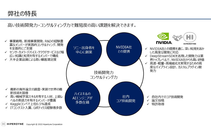 NVIDIA社との提携を通じ、深い知見を活かした高度な開発に対応し、DeepStreamSDKを活用した開発力は業界トップレベルで、NVIDIA社からも高い評価を得ています。