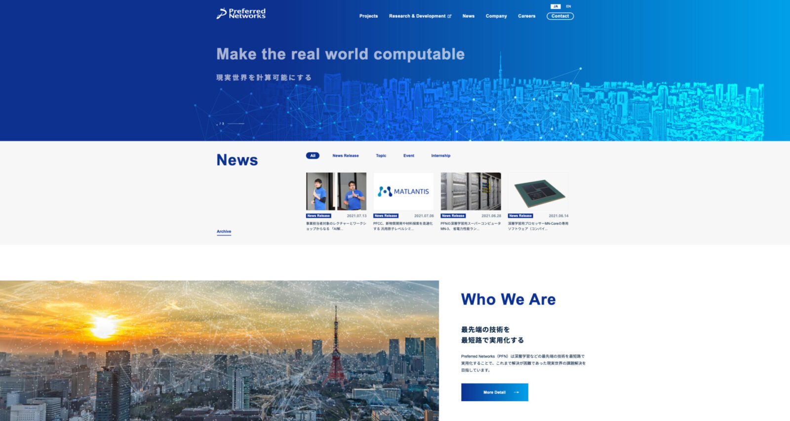 ロボット最大手メーカーのファナックと共同研究開発を行い、AIアルゴリズムを組み込んだ産業用ロボットや工作機械に適用し、深層学習を活用した新機能は商品にも実装され、現場への導入が進んでいます。