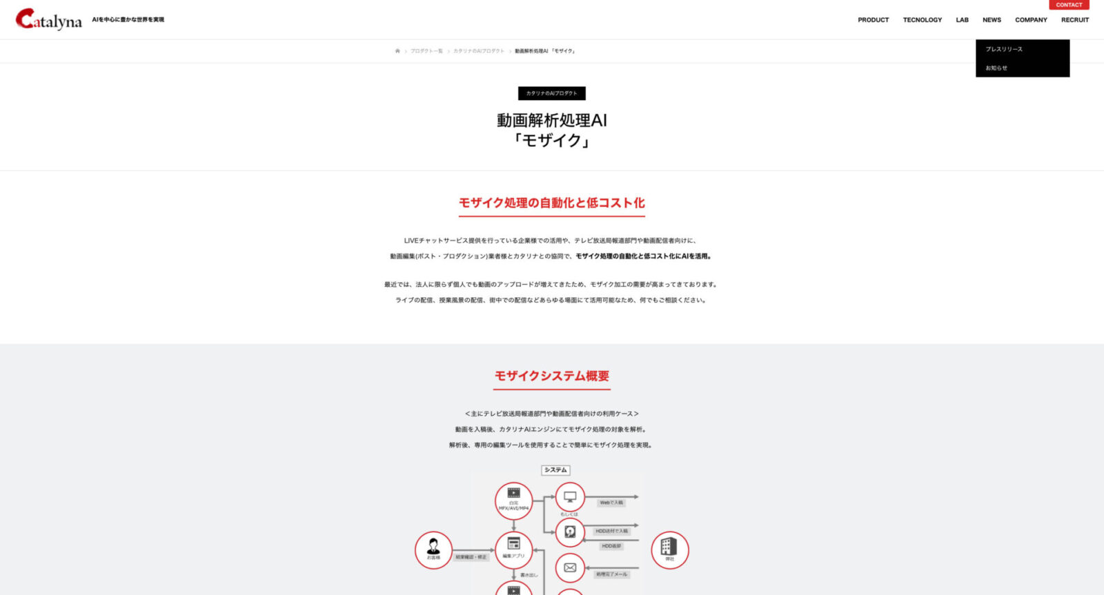 LIVEチャットサービス、テレビ放送局報道部門や動画配信者向けに、モザイク処理の自動化と低コスト化にAIを活用しました。最近では、法人だけでなく個人でも動画のアップロードが増えてきたため、モザイク加工の需要が高まってきています。