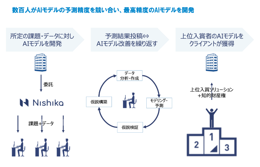 AIの精度を競い合う大会「データ分析コンペ」を通じた最高精度のAIモデル開発、ビジネスコンサルティングとAI開発を組み合わせ、AI開発を要件定義などの上流工程から支援