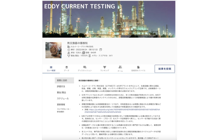 ・エムイーシーティー株式会社:渦流探傷試験データを用いた熱交換器の傷検知を行う機械学習モデルの開発