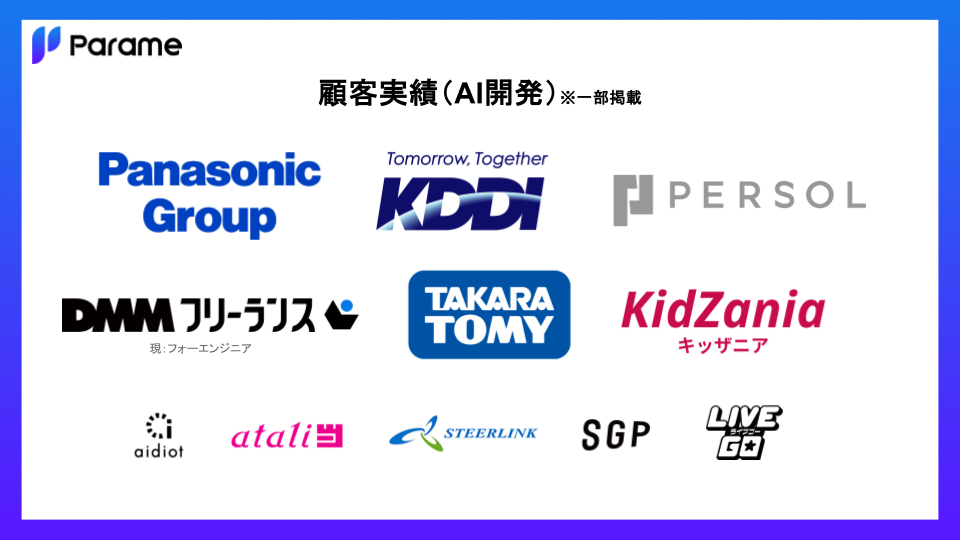 『PoC成功率92%・支援実績400社』元アクセンチュア(AIのPoC専門部隊)のAIエンジニアの代表が、貴社専用システムを高品質・低単価・最速で納品。顧客例:パナソニック、KDDI、パーソル、電通等
