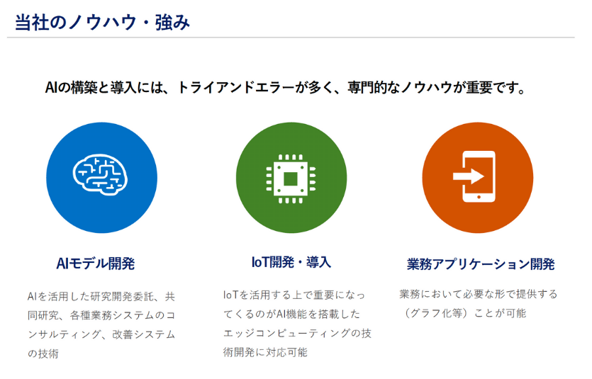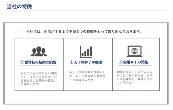AIを活用した研究開発・共同研究で世界初の技術に挑戦し、特許7件取得の実績があります。