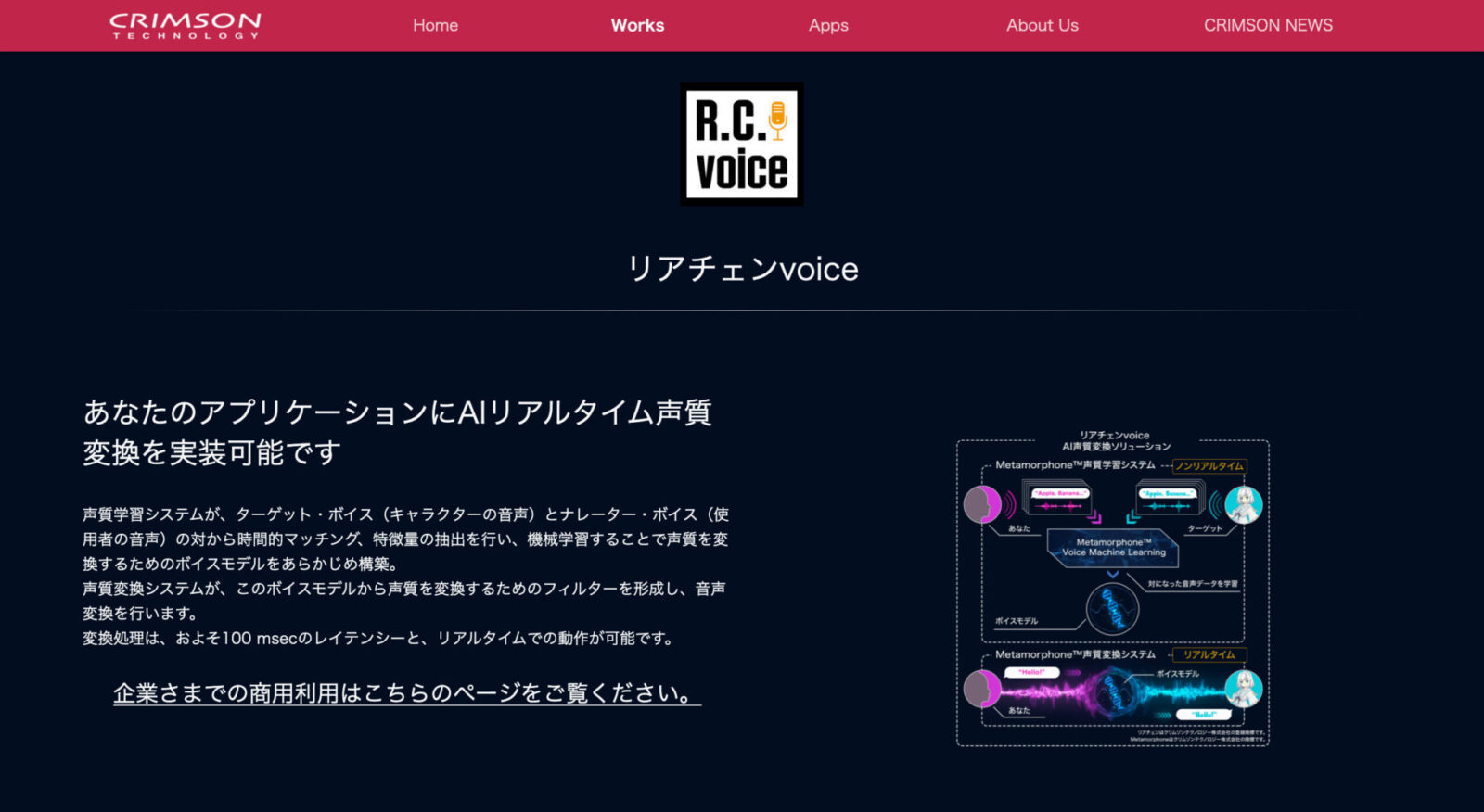 声質変換エンジンはSDKを用意しており、SNSやゲーム、業務用アプリケーションでも実装可能としています。