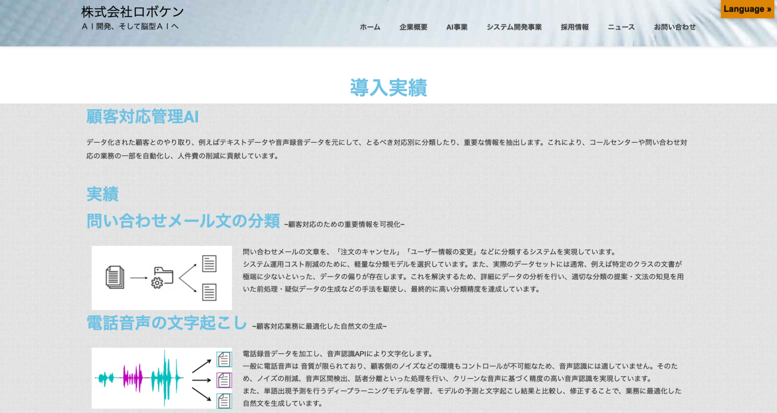 コアテクノロジー(画像認識・自然言語処理・音声認識・感情認識・数値予測)をベースにAI開発を行っています。