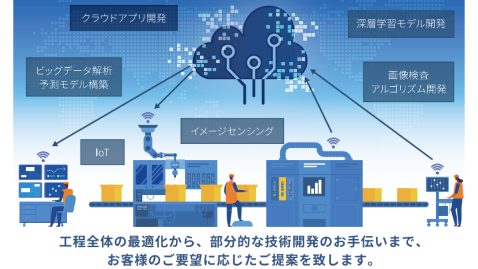 画像処理、AI/深層学習、Webアプリケーション開発、クラウドインフラ構築などの技術を元に、顧客の課題に向き合った製品・サービス開発を行っています。