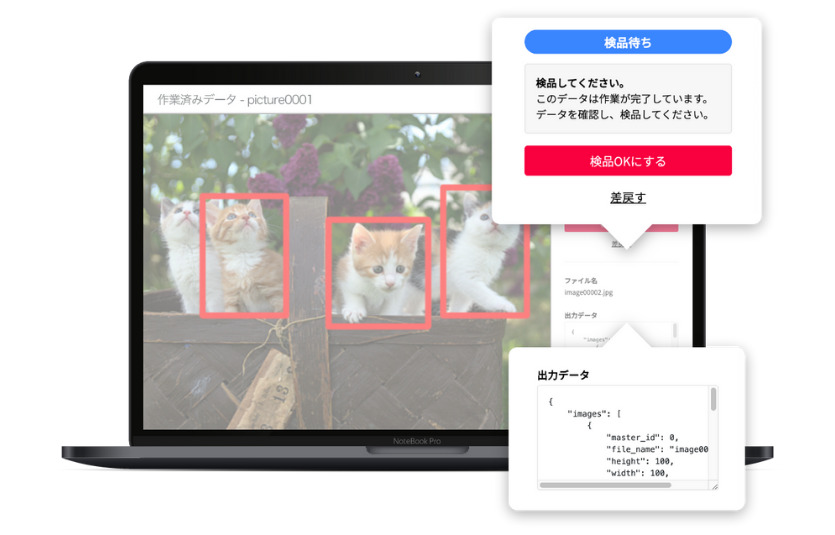 仕上がった加工データをリアルタイムにレビューが可能です。要件に沿わない加工データがあった場合は差戻すことができます。