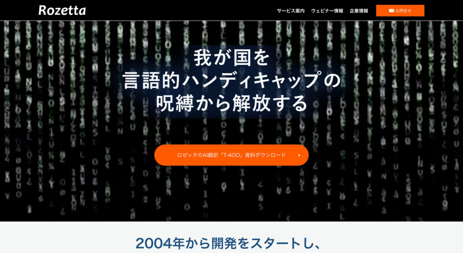 ビジネス向けAI翻訳でトップシェアを誇るロゼッタの「T-400」エンジンにより高精度な翻訳を実現します。