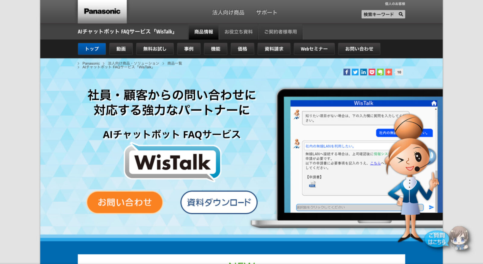 3パナソニックのQ&Aテンプレートを無償で提供、また、製品版を1ヶ月間無料でお試し可能