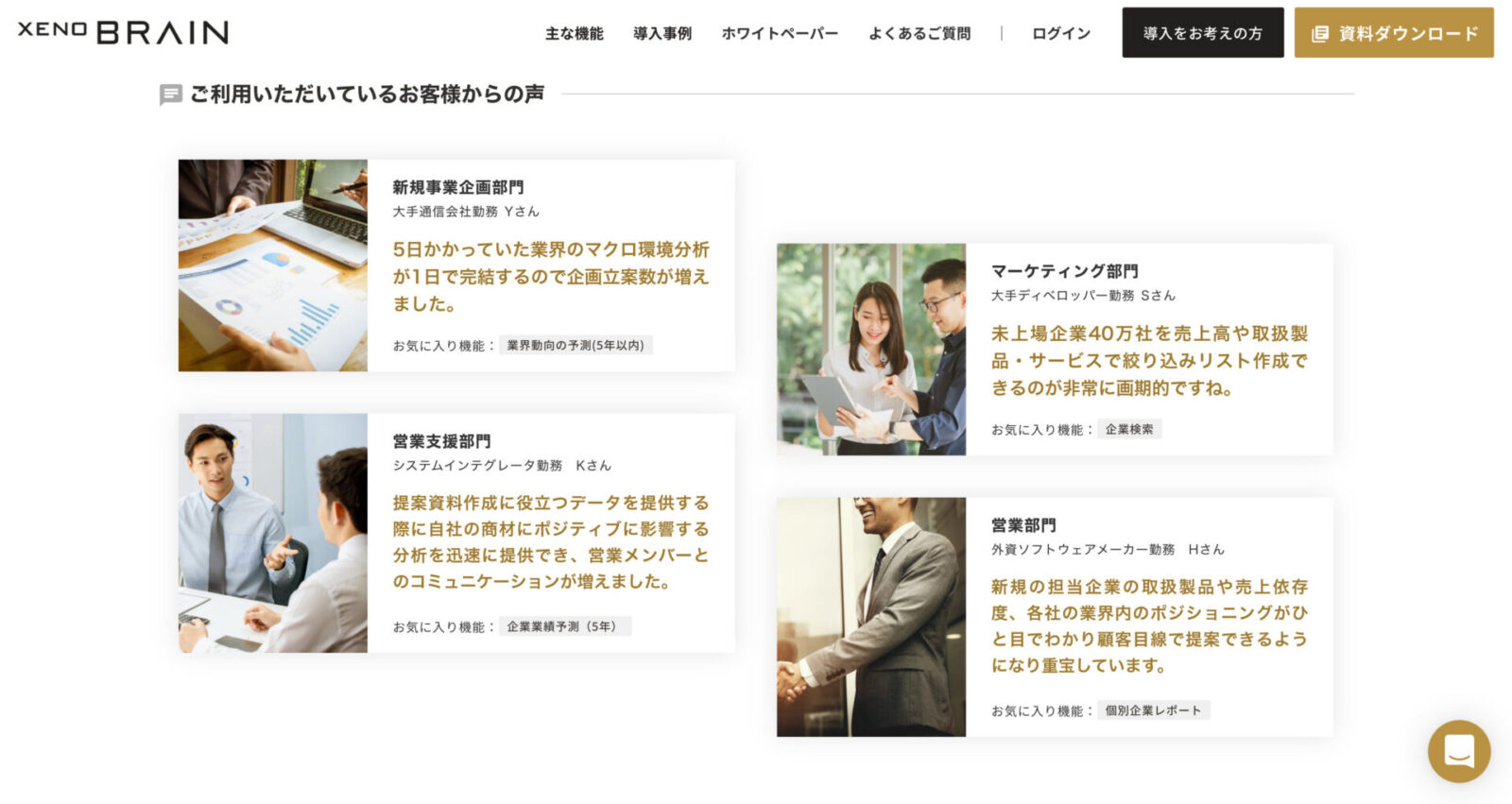未上場企業データ国内最大手の帝国データバンク社と資本業務提携を実施し、信頼性の高い未上場企業データを解析することで、1年後や5年後について精度の高い予測結果を作成、企業の将来性を10段階評価ですぐに把握することができます。また業界動向の予測や経済指標の予測も行っています。